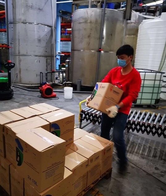 2月8日一早,刘总协调了留在广州过年的物流部叶司机和销售部蒋经理到公司应急处置,迅速将200桶20L的高纯尿素溶液装车发出。诺大的仓库内,有着近100吨节前提前生产备货的各类尿素成品,这是多么让人安心的保障货存啊。三个人戴着色差各异的口罩,彼此看不清对方的表情,但坚定的眼神传递出的是同一个决心:为客户,为抗疫,决不推辞。